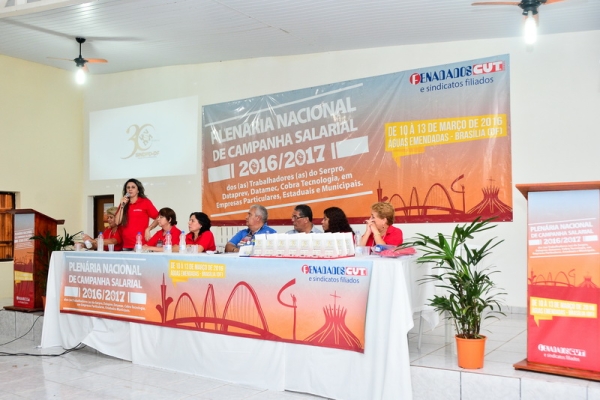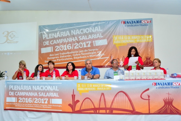 No dia 13/3, encerramento da Plenária Nacional de Campanha Salarial 2016/2017, os/as delegados/as aprovaram em plenário as pautas de reivindicações 2016/2017 discutidas nos grupos de trabalho, que serão entregues ao Serpro, Dataprev, Datamec e Cobra Tecnologia.