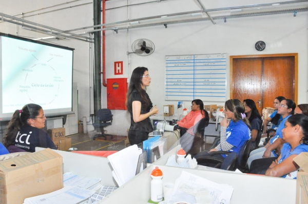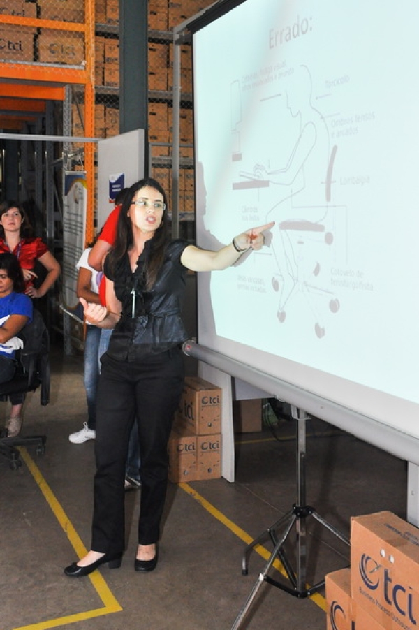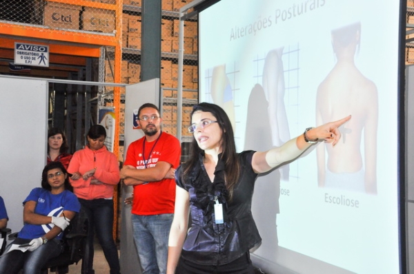 Uma fisioterapeuta explicou sobre a postura correta no ambiente de trabalho ao se sentar e mesmo no uso do computador, fez exercícios com os trabalhadores que devem ser repetidos no seu dia a dia e, com bom humor, houve muita interação entre o grupo. Muitos outros assuntos também foram abordados.