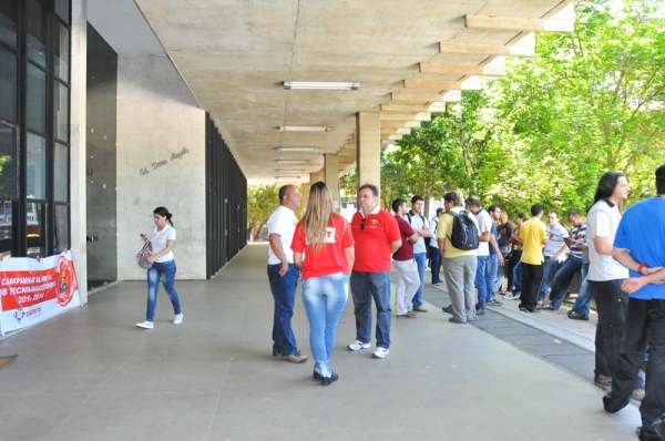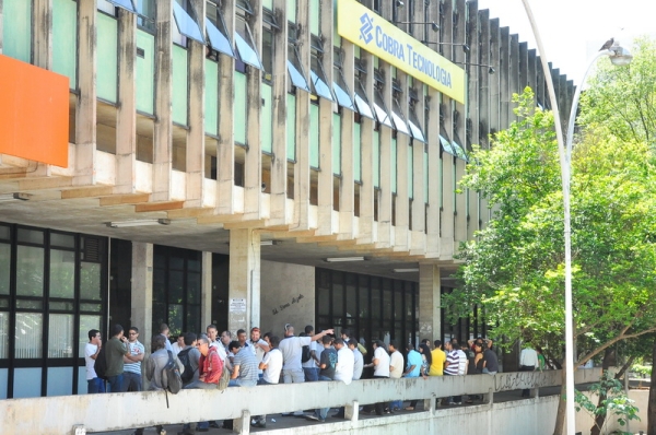 Os trabalhadores estão parados em frente aos escritórios da Cobra do Setor Comercial Sul e da Asa Norte. A paralisação de 24 horas será durante todo o dia de hoje, 4 de novembro de 2013.