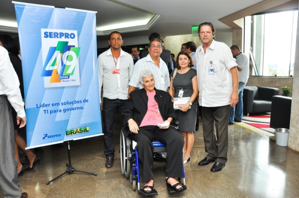 No dia 3/12, o Serpro promoveu evento na sede, em Brasília, para comemorar os 49 anos de sua fundação e homenagear os trabalhadores com um certificado e um pin (boton) comemorativo para os empregados com 10, 25, 30 e 35 anos de serviços prestado à empresa.
