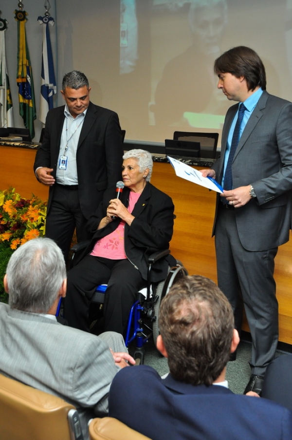 A Diretora do SINDPD-DF, Rosa Maria M. de Barros, 25 anos de Serpro, coordenadora nacional do movimento dos anistiados, aproveitou a solenidade em que foi uma das homenageadas para fazer um pronunciamento político sobre a situação desses trabalhadores na empresa. “O momento é de reflexão para avançarmos mais. Estamos felizes pela homenagem a todos os trabalhadores que construíram essa empresa e queremos registrar a necessidade do resgate histórico dos companheiros anistiados que são merecedores também”, afirmou.