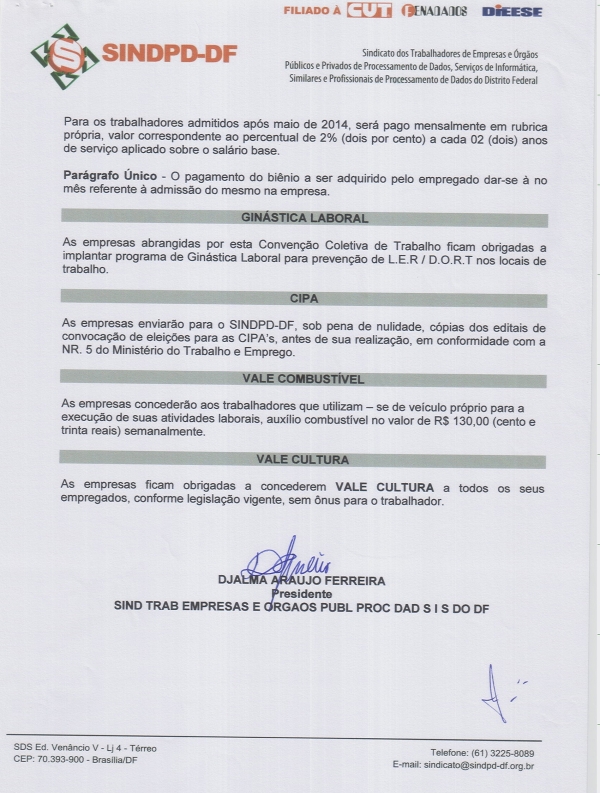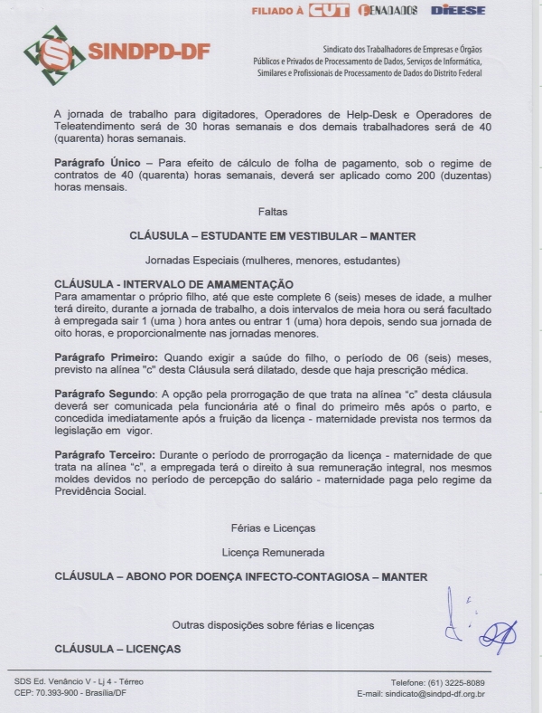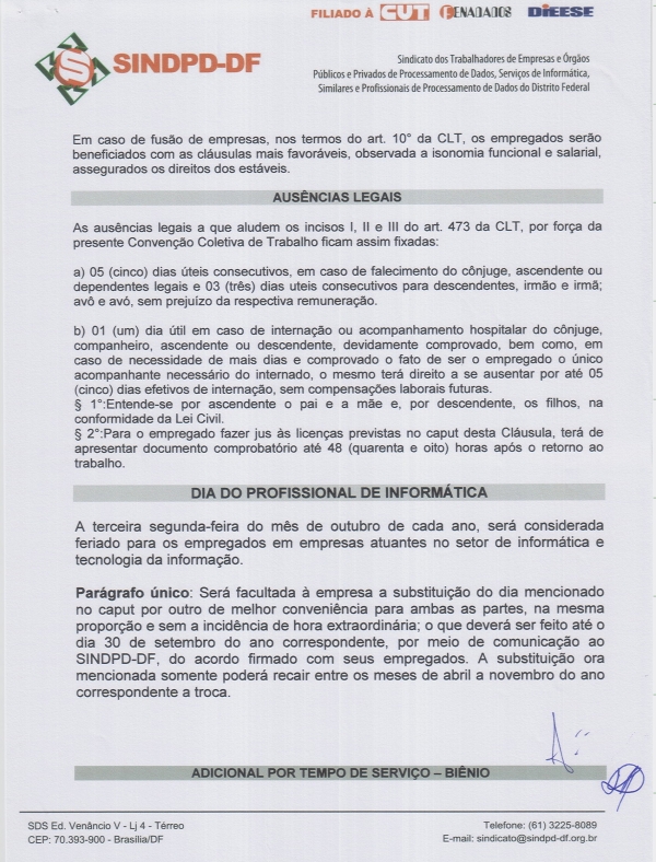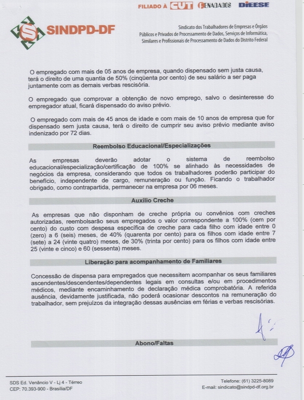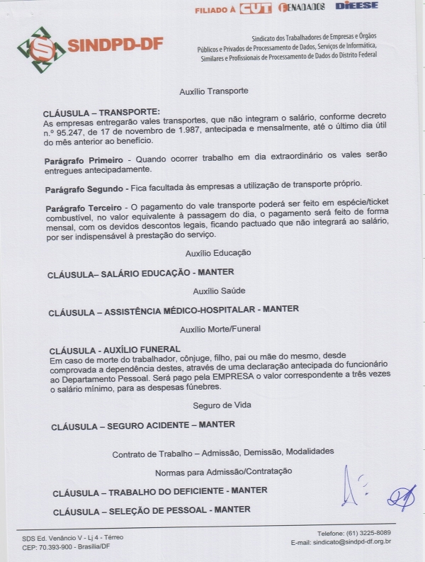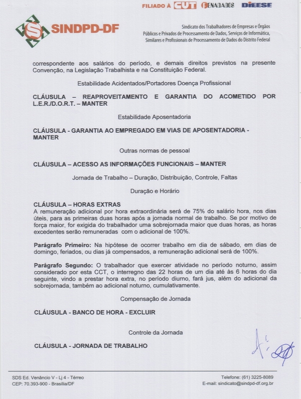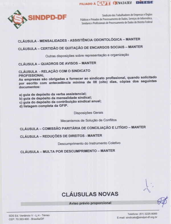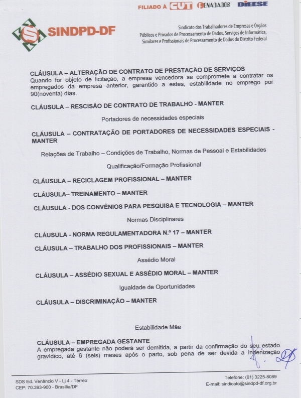 Na reunião, o presidente do SINDSEI-DF assinou o Termo de Manutenção da Data Base da categoria, o que mantém em vigência a Convenção Coletiva de Trabalho atual.