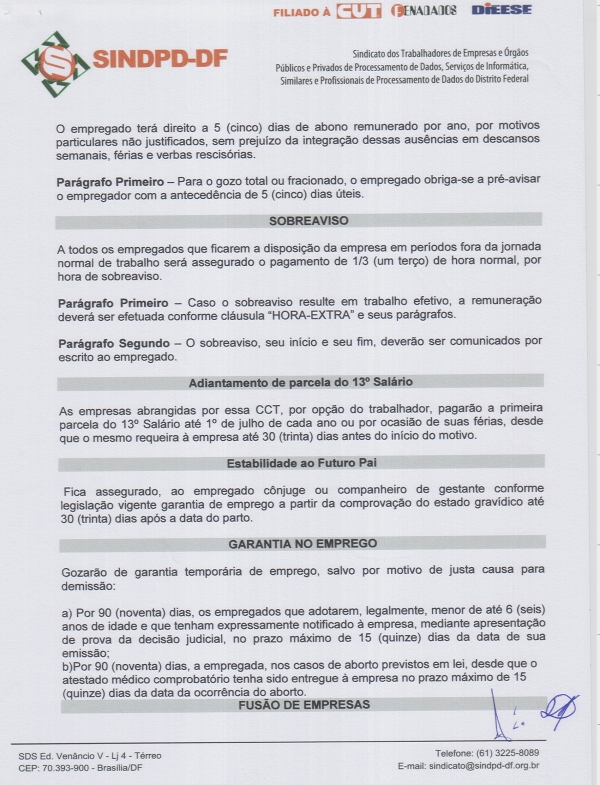 O SINDPD-DF solicitou ao SINDSEI-DF o agendamente da primeira mesa já para o início de abril. O presidente do sindicato patronal ficou de analisar junto aos diretores do seu sindicato a possibilidade de fazer a primeira mesa na semana de 7 a 11 de abril. Nos próximos dias deve ser divulgado o calendário das mesas de negociação.