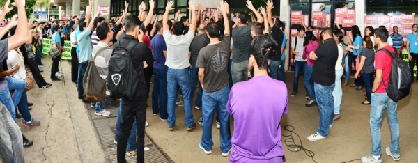 A mobilização dos trabalhadores da BBTS/Cobra tem conseguido a adesão de mais empregados à greve. Nesta quinta-feira, 27/11, a paralisação ocorreu no Setor Comercial Sul, em frente ao Ed. Dona Ângela, onde se concentra uma das maiores terceirizadas da empresa, a BS. Os dirigentes do SINDPD-DF acreditam que a paralisação já conta com quase a totalidade dos trabalhadores da empresa.