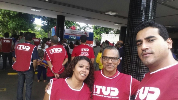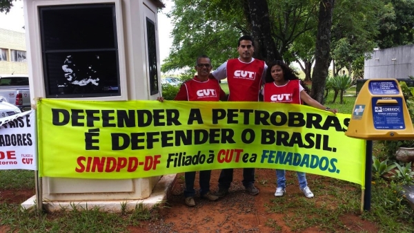 Nessa quarta-feira (25), dirigentes da CUT e sindicatos filiados, representantes de movimentos sociais e estudantis compareceram ao ato em defesa da Petrobras, em frente à sede da empresa, em Brasília. Convocada pela CUT e incorporada pelas demais entidades, a atividade apresentou faixas, cartazes e panfletos idealizados com o objetivo de esclarecer que o apoio prestado à empresa não exige a suspensão dos supostos casos de corrupção que estão sendo apurados. Ao contrário, as entidades pedem a investigação e a punição dos culpados, mas exigem que as ações que sondam a empresa não tenham como objetivo central a desmoralização da Petrobras como meio de entregá-la à iniciativa privada. “O que está em jogo não é a questão da corrupção, mas os intriguistas que querem levar o nosso petróleo, querem encurralar a Petrobrás e querem, com isso, também barrar a economia toda. Estão usando as regras do mercado, estão usando o discurso da corrupção para desvalorizar a empresa. Enquanto dizem para a população que estão salvando a Petrobras, eles estão enterrando a Petrobras e entregando ela para os Estados Unidos”, explica a coordenadora geral do Sindicato Unificado dos Petroleiros do estado de São Paulo – Sindpetro, Cibele Vieira. “Atos como o de hoje têm que ter continuidade, não só em defesa da Petrobrás, mas em defesa de todo o patrimônio brasileiro. Com certeza haverá outros momentos como este”, afirmou o dirigente da CUT Brasília e da CUT Nacional, Roberto Miguel. De acordo com o Departamento Intersindical de Estatística e Estudos Socioeconômicos – Dieese, a Petrobras atualmente é detentora de 13% do PIB nacional e uma das principais fontes de renda do País, não apenas pela produção de petróleo, mas também no que diz respeito ao investimento nos setores de saúde e educação e em sua importância na geração de emprego e renda. Atualmente, a petrolífera é detentora de quase 90 mil empregos diretos e mais de 500 mil indiretos. “A Petrobrás é fruto do movimento social brasileiro. Ela só existe por causa dos movimentos trabalhistas, por causa da UNE (União Nacional dos Estudantes) e da UBES (União Brasileira dos Estudantes Secundaristas), que participaram da campanha ‘O Petróleo é nosso’. Nos últimos 12 anos, a Petrobrás deixou de ser uma petrolífera quase falida para se tornar uma das principais empresas do Brasil. Por isso, nós não devemos deixar que esse golpe aconteça. Estamos aqui para mostrar que a Globo (TV) está do lado da burguesia e da direita brasileira. O que está em jogo é o investimento da saúde e da educação no Brasil”, enfatizou o presidente da UNE, André João. Durante o ato, o dirigente da CUT nacional, Jacy Afonso, falou sobre a legitimidade da manifestação que, segundo ele, é desvinculada de interesses partidários, assim como as demais mobilizações que têm ocorrido ao longo das últimas semanas. “Nós da CUT temos um importante papel junto à nossa militância, que é o de não confundir governo, partido e sindicato. Nesse momento, estamos nos mobilizando contra as medidas provisórias 664 e 665 (do Governo Federal), contra a abertura de capital da Caixa e à favor de uma Petrobrás 100% brasileira. Essa é uma tarefa de todos os partidos e organizações de esquerda”, concluiu o dirigente sindical. CUT Brasília
