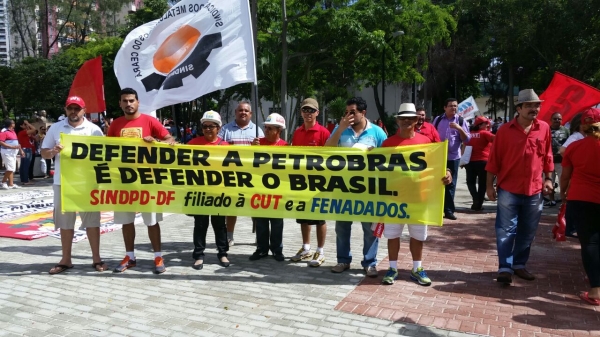 "A Petrobras é patrimônia do povo brasileiro e não vamos permitir que interesses econômicos do capital consigam, com essa campanha difamatória, privatizar a empresa. O petróleo é nosso", afirma Djalma Ferreira, presidnete do SINDPD-DF.