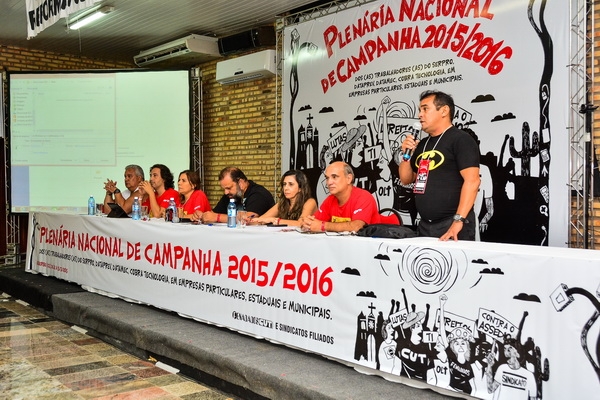 No último dia de Plenária Nacional de Campanha Salarial 2015/2016, dirigentes sindicais e trabalhadores da área de TI debateram sobre estratégia de Campanha, no qual contextualizou o Plano de Lutas (Eixos políticos e econômicos) da campanha.