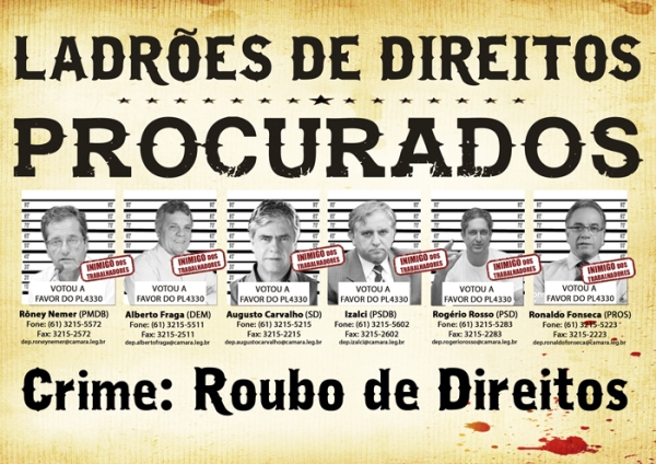 - Mobilização na Câmara contra o PL 4330 na terça (14), quando parlamentares analisam emendas para o projeto que promoveu o maior roubo de direitos da classe trabalhadora na história;