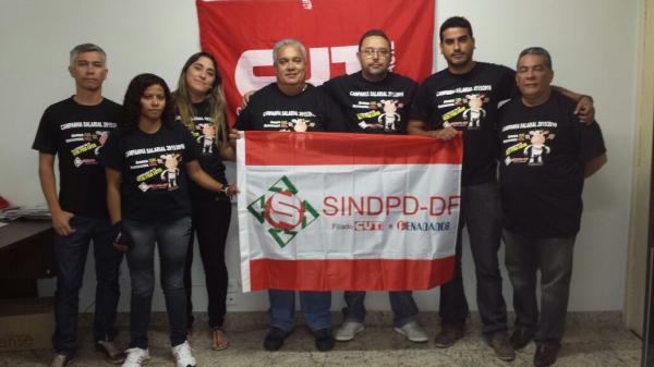 A Direção do SINDPD-DF fez questão de manifestar o apoio e vestiu preto em prol do Dia de Luta dos trabalhadores das empresas particulares do DF.