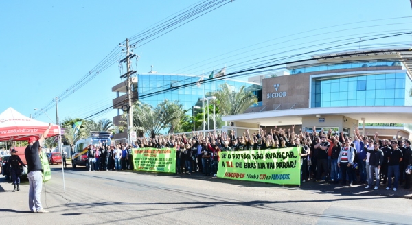 A assembleia encerrou a paralisação desta quarta, com a mobilização de mais de 500 trabalhadores parados em frente ao prédio do SICOOB, no SIG.