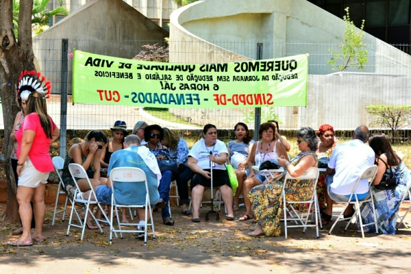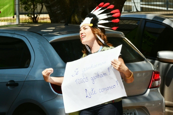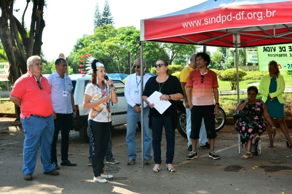 Uma trabalhadora personificou a figura da índia como símbolo dessa luta. “Temos que enaltecer as mulheres pela força com que se engajaram neste movimento”, enfatiza Djalma Ferreira, presidente do SINDPD-DF.