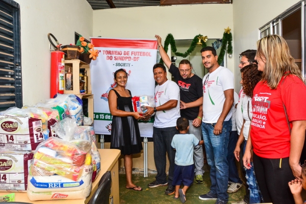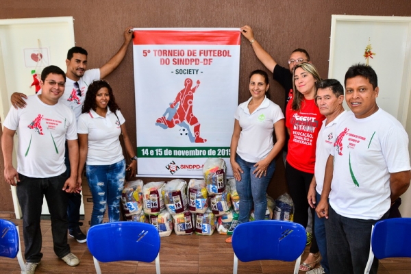 Na última quinta-feira, 10/12, a direção do SINDPD-DF (Osiel Rocha, Claudinei Pimentel, Maria do Socorro e Elaine Lemes) e os representantes das equipes da Ases (Itamar) e da Datamec (Rafael), dois dos times que participaram do 5º Torneio de Futebol, realizaram a entrega das cestas básicas arrecadadas no evento nas instituições sem fins lucrativos Abrigo Lar de São José, em Ceilândia, e Creche Alecrim, na Estrutural.