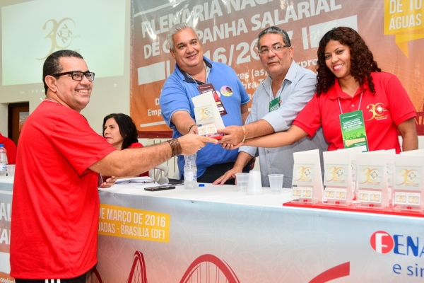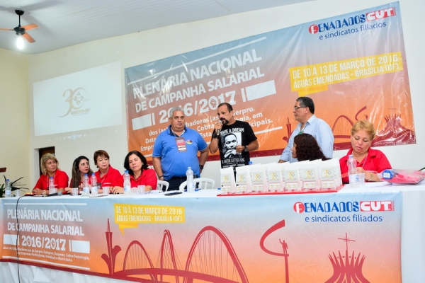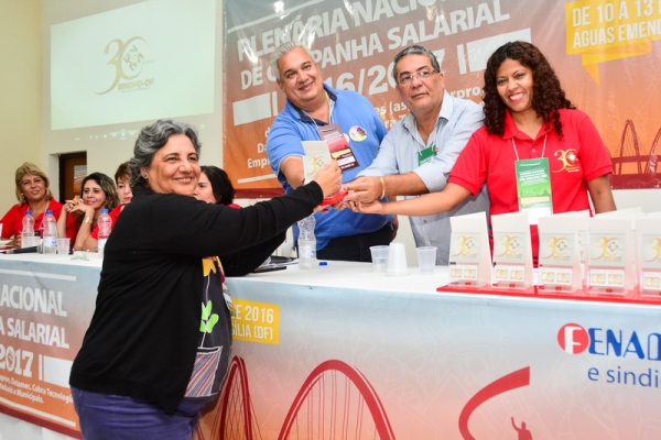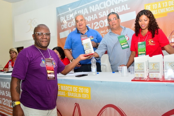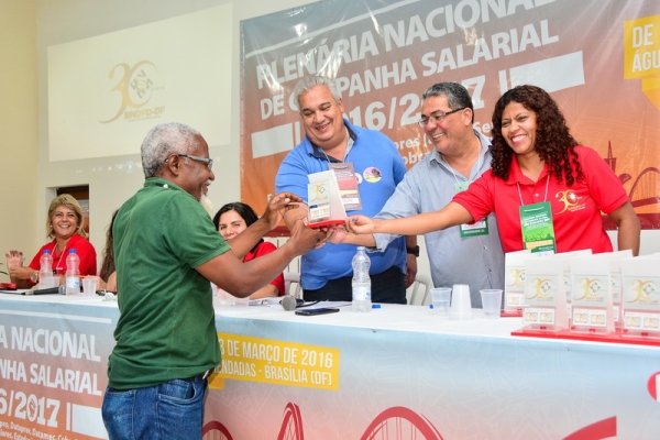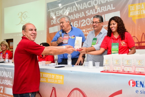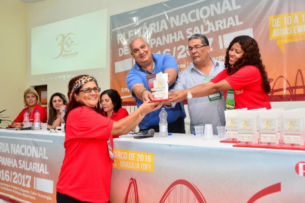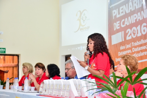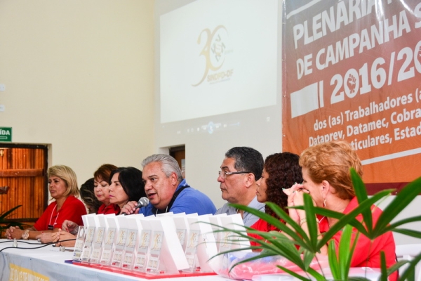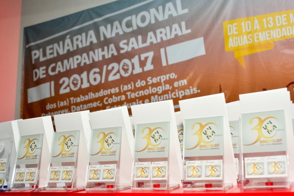 Na abertura da Plenária Nacional de Campanha Salarial 2016/2017, no dia 10/3, o SINDPD-DF foi homenageado por seus 30 anos de atuação em defesa do/a trabalhador/a de Tecnologia da Informação. A solenidade ocorreu no auditório do Hotel Fazenda Águas Emendadas, onde a plenária foi realizada, e contou com a participação de 230 delegados/as representando a categoria brasileira de TI.