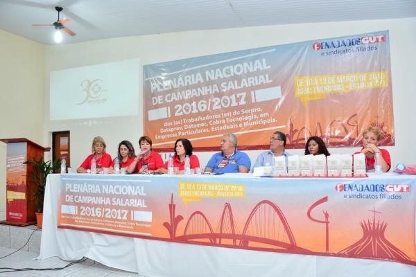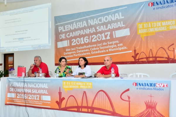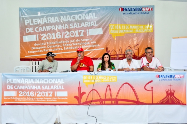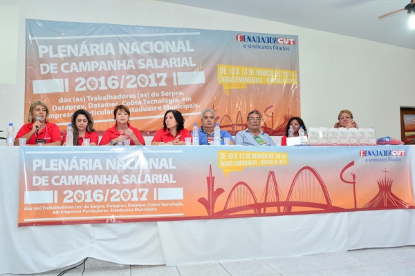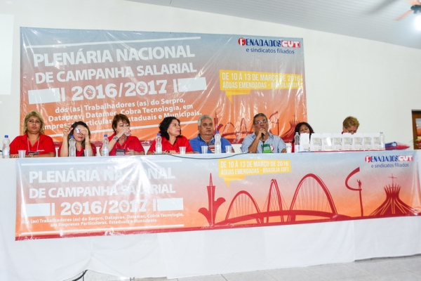 No dia 13/3, encerramento da Plenária Nacional de Campanha Salarial 2016/2017, os/as delegados/as aprovaram em plenário as pautas de reivindicações 2016/2017 discutidas nos grupos de trabalho, que serão entregues ao Serpro, Dataprev, Datamec e Cobra Tecnologia.