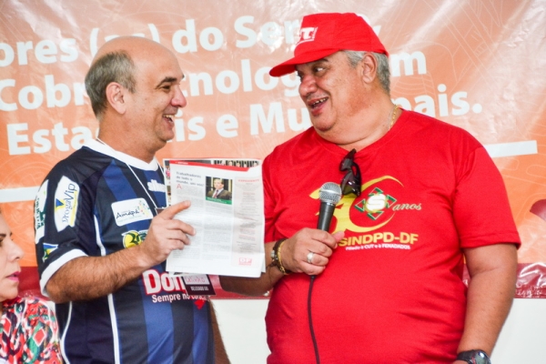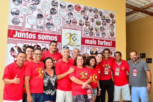 Na homenagem, o SINDPD-DF foi reverenciado pela Fenadados e os sindicatos que compõem a federação e dividiu com os presentes a importância da luta das entidades para a história dos trabalhadores agraciando os dirigentes com um troféu com a logomarca dos 30 anos e o selo dos Correios.