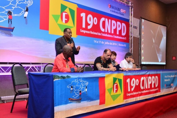 Nesta quinta-feira, 14/7, começou o 19º CNPPD – Congresso Nacional dos Trabalhadores e Trabalhadoras de TI. Neste congresso será eleita e empossada a nova diretoria da Fenadados para o triênio 2016-2019, contando com a presença de 200 delegados de 18 estados (AM, AP, BA, CE, DF, ES, GO, MA, MT, MG,PA, PB, PE, PI, RJ, RN, SE e RS), além de definidos os planos de luta para a gestão.