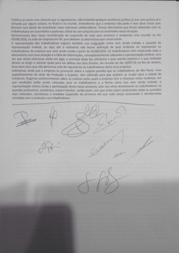 A representação dos trabalhadores cobrou qual o impacto que pode trazer aos trabalhadores, pois as experiências aplicadas no Brasil resultaram em demissões e prejuízos. Também criticaram a forma como a empresa vem atropelando as entidades sindicais representante dos trabalhadores. Em nenhuma das reuniões anteriores o assunto veio à tona.