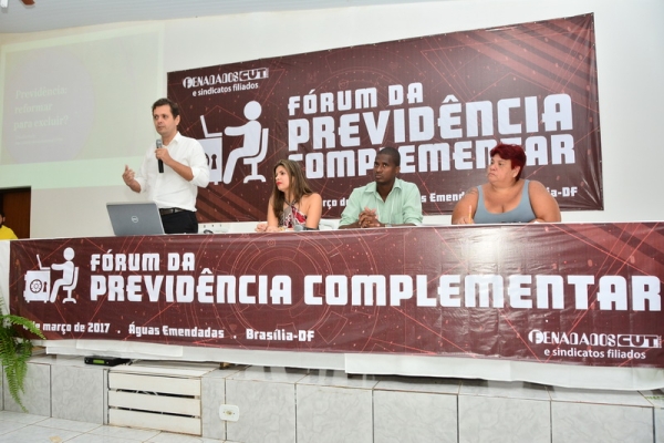 A previdência pública e sua reforma foi abordada por Claudio Puty, professor doutor de economia da Universidade Federal do Pará; e Vera Level, do SINDSPREV – PB e da CUT-PB. A previdência complementar foi tradada por Antonio Bráulio de Carvalho, presidente da ANAPAR (Associação Nacional dos Participantes de Fundos de Pensão); Edson Simões, secretário-geral do SINDPD-DF e Telma Dantas, dirigente da Fenadados.