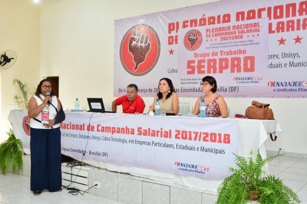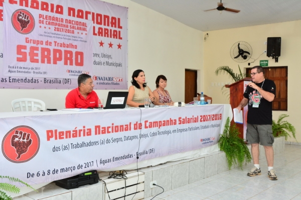 A Plenária Nacional de Campanha Salarial 2017/2018 dos trabalhadores de TI, realizada de 6 a 8 de março, discutiu a pauta de reivindicação dos trabalhadores e a atual conjuntura política e econômica e como terão reflexos nas negocições dos acordos coletivos dos trabalhadores do Serpro, Dataprev, Unisys Brasil, Cobra Tecnologia e de empresas particulares, estaduais e municipais. O evento ocorreu no Hotel Fazenda Águas Emendadas, em Brasília (DF).