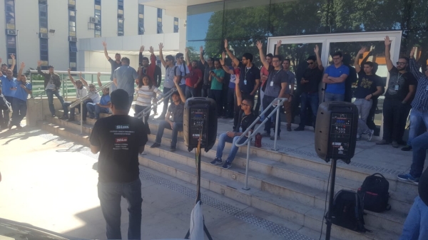 Os trabalhadores da BBTS/Cobra de Brasília estão em greve desde esta segunda-feira, 18/6. A greve é por tempo indeterminado e ocorre em diferentes estados brasileiros. A concentração dos grevistas do DF é na porta da sede da empresa, na 508 Asa Norte. O SINDPD-DF convoca os trabalhadores a se juntarem ao movimento grevista e permanecerem na frente da empresa. "A greve é feita aqui. Os trabalhadores não estão de folga, estão lutando por melhorias em seus salários e contra a retirada de direitos", informa Osiel Rocha, coordenador da campanha salarial e diretor do sindicato.