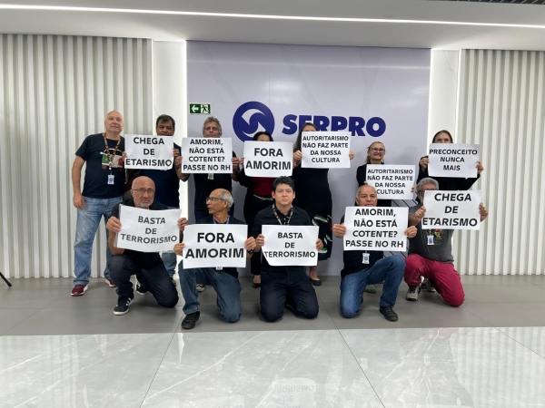 Nesta quinta-feira, 5/12, o Serpro reuniu os funcionários de todo o país nos respectivos auditórios de suas regionais e na sede, e o seu presidente, Alexandre Amorim, foi hostilizado pelos trabalhadores de algumas regionais que levaram para o evento faixas e cartazes criticando a sua gestão e o etarismo na empresa.
