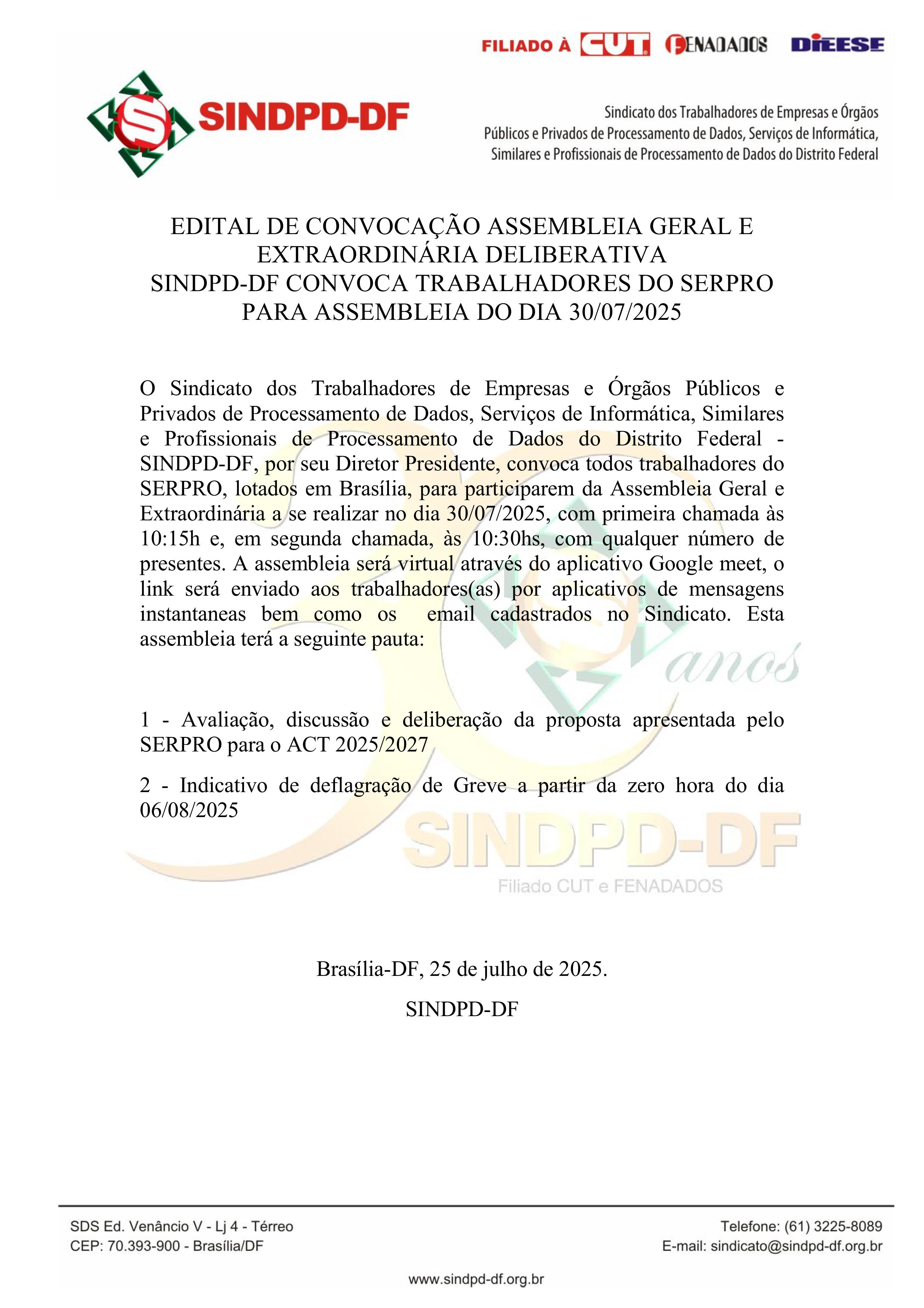 26/07/2025 - TRABALHADORES DO SERPRO PODEM DEFLAGAR GREVE EM AGOSTO